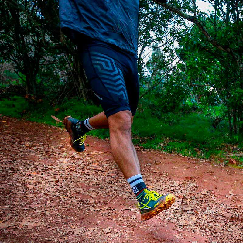 Auch geeignet zum Üben von Canicross und Orientierungslauf dank seines breiten Leistens und der Stabilisatoren des Schuhs, die große Stabilität und Schutz im Rennen bieten.