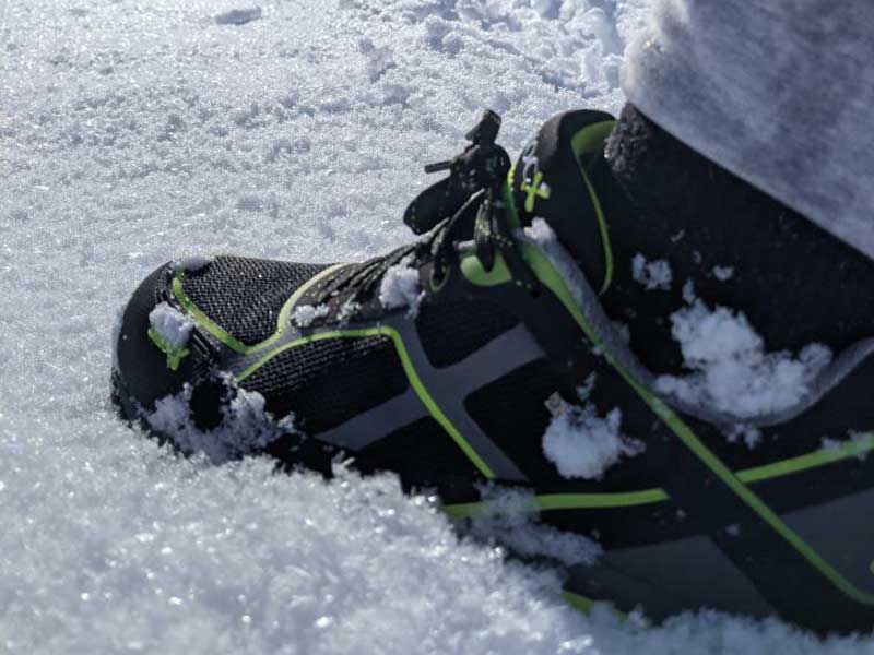 Es hat zwei zusätzliche Schutzvorrichtungen sowohl an der Zehenkappe als auch an der Ferse, um vor Stößen oder Kratzern auf felsigen Oberflächen zu schützen.